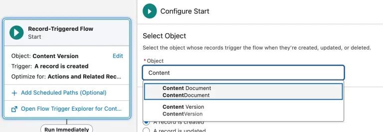 自spring '26 版本起,记录触发流已支持将内容文档 (contentdocument)和 内容版本(contentversion )两类对象作为触发条件。