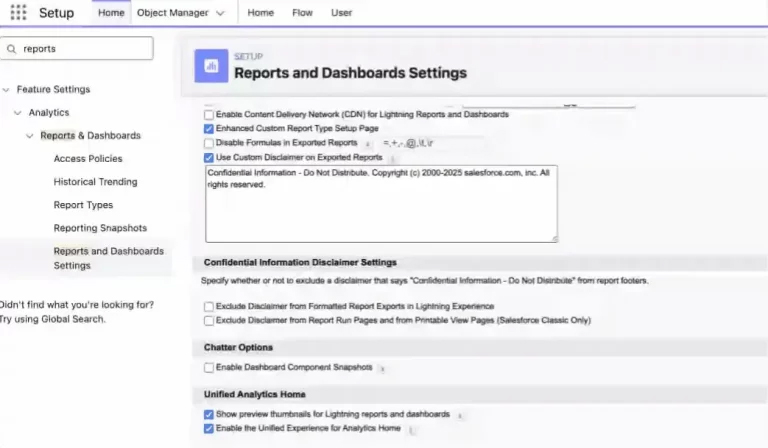在 spring '26 版本中,您可以在导出的报表中添加自定义免责声明,该声明会与 salesforce 平台原有的默认免责声明一起显示。